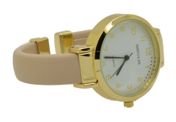 Our NEW Bangle watch takes a great concept and puts a sophisticated spin on this easy to wear timepiece. Its chunky body ties beautifully with the bangle ends either side of a soft vegan leather strap. Simple, clear face with classic numeral numbers is easy to read on a 35mm case. 5 new season colours, Gold/Stone, Rose Gold/Green, Gold/Blue, Silver/Black Snake and Gold/Brown Snake
