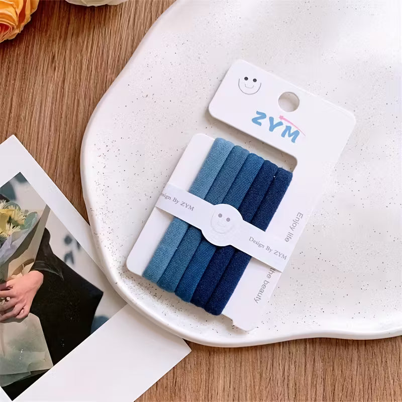 Set of 5 Seamless High Elasticity Hair Ties - Blue