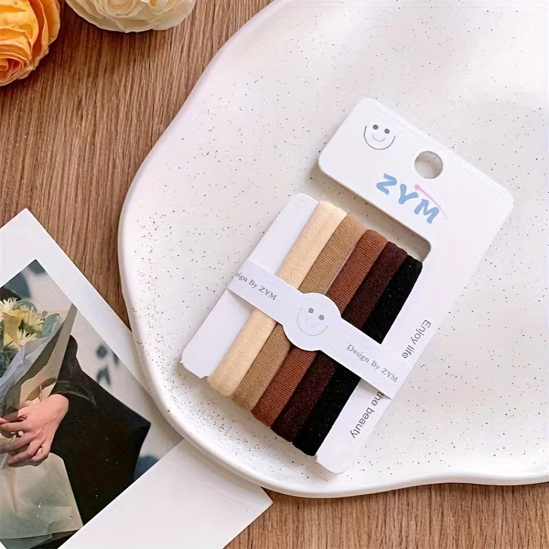 Set of 5 Seamless High Elasticity Hair Ties - Coffee