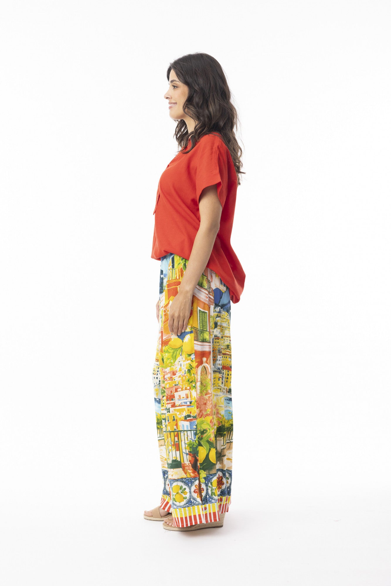 Channel effortless style with our elegant garment, the Amalfi Pant. These pants feature a playful array of colours and a flattering high waist with an elasticised band. The relaxed, wide-leg fit ensures comfort and ease, while the length elongates the leg. Perfect for pairing in a set with our Sotavento shirt.