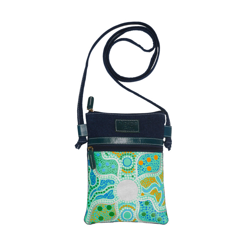 Hand Crafted and Hand Painted Leather and Denim Combination Cross Body