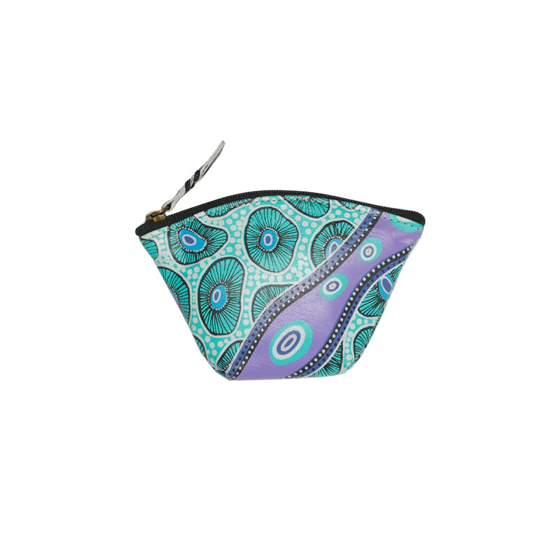 Hand Crafted and Hand Painted Leather Purse 12 X 8cm "Looking for Periwinkles"