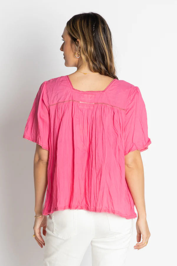 Effortlessly chic and beautifully detailed, the LulaLife Celeste Cropped Top is your go-to piece for breezy summer style. Crafted from lightweight 100% cotton voile, this top offers a relaxed fit that drapes comfortably while keeping you cool. The square neckline and elbow-length sleeves add a timeless touch, while braid trim detailing on the neck and hems elevate its boho charm.