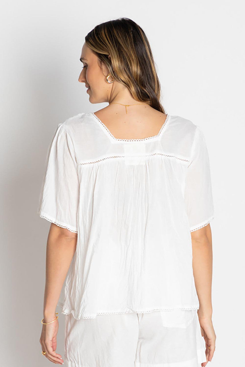 Effortlessly chic and beautifully detailed, the LulaLife Celeste Cropped Top is your go-to piece for breezy summer style. Crafted from lightweight 100% cotton voile, this top offers a relaxed fit that drapes comfortably while keeping you cool. The square neckline and elbow-length sleeves add a timeless touch, while braid trim detailing on the neck and hems elevate its boho charm.