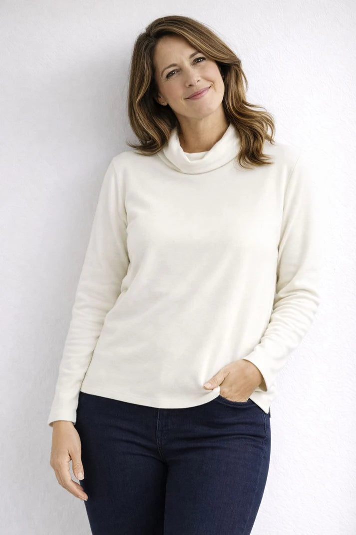Chic Roll-Neck: Features a soft, elegant roll-neck (or snood-style) collar that adds both warmth and a polished look to your outfit.