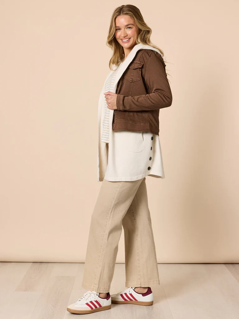 - It features a flattering hip length fit that sits perfectly at the waist, making it an easy layer to throw over a simple tee or your favourite high-waisted jeans.