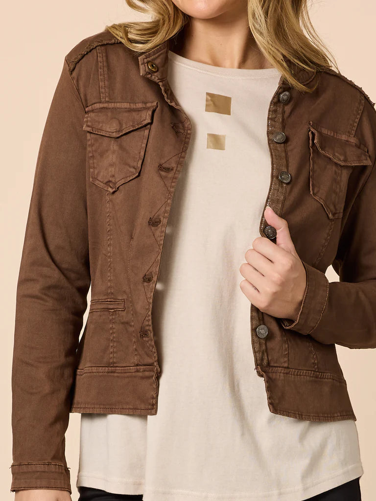 Military Denim Jacket By Threadz - Chocolate