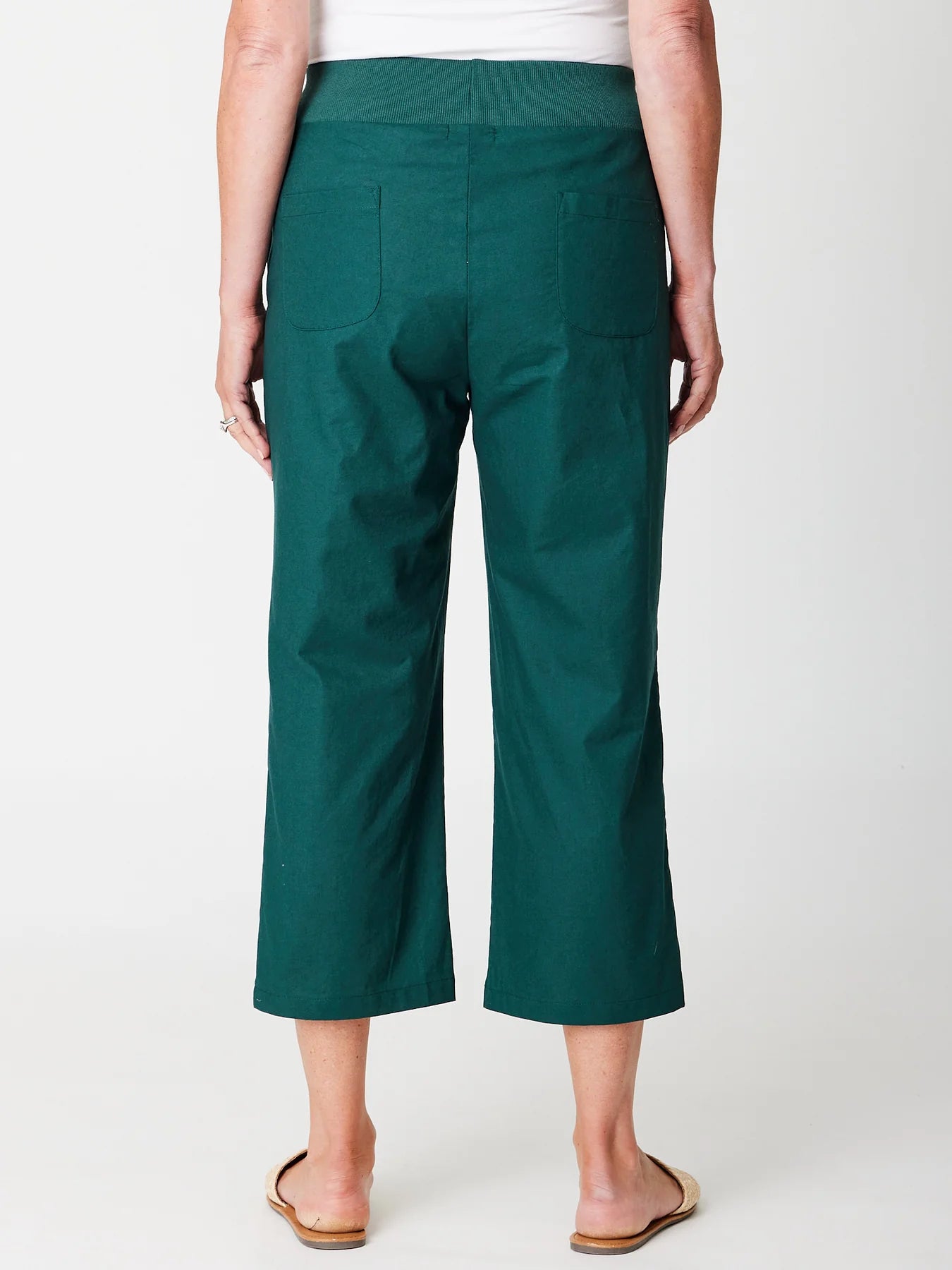 Experience effortless comfort and style with these Wide Leg Crop Pants. Crafted from a breathable cotton-linen blend, they keep you cool on hot summer days. The relaxed fit combined with a soft stretch rib knit waistband ensures a perfect fit while allowing easy movement. Practical pockets add convenience without compromising on the chic look. Ideal for warm weather, these pull-on pants blend comfort and fashion seamlessly.